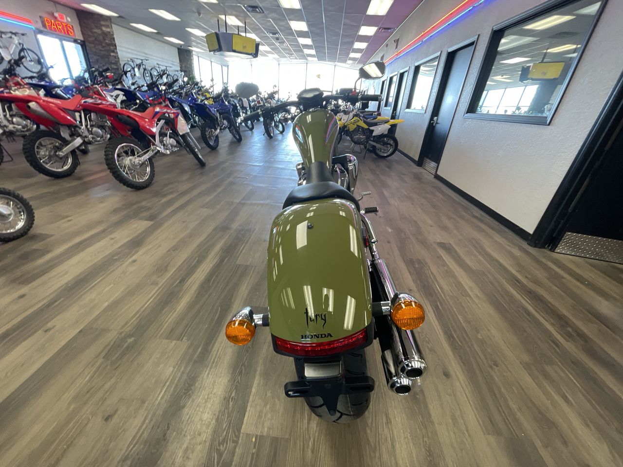 DARE TO BE DIFFERENT2024 Honda Fury Rule the open road in style with the Honda Fury. This turn-key chopper boasts a formidable 1312cc V-Twin engine, and adorned in the striking Adventure Green design—fresh for 2024—this remarkable machine embodies the essence of Honda’s unrivaled craftsmanship and rideability. With its head-turning style and uncompromising quality, the Fury is dressed to impress while still daring to be different, proving that when it comes to coolness, its reign is truly uncontested.