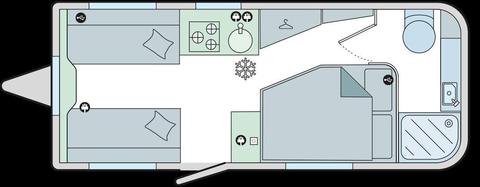 Bailey Discovery D4-4 The Bailey, DiscoveryD4-4 is easily towed by most vehicles and benefits from an extended A-frame suitable for additional storage or bike rack. The 4 berth Bailey DiscoveryD4-4 is perfect for families, couples or friends for adventures on and off the road. The gorgeous upholstery and scatter cushions enhance the comfort and feel of this caravan making it a pleasure to spend time in when your away from home. The Bailey DiscoveryD4-4 benefits from a spacious front lounge that converts to a double bed, middle kitchen, fixed french bed and rear washroom with separate shower and toilet.