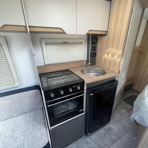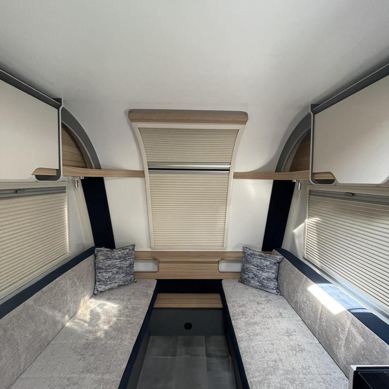 The Bailey Discovery D4-4 features a well-thought-out layout that maximizes space and comfort. With a generous lounge area that converts into a sleeping space, you can relax and unwind after a day of adventures.