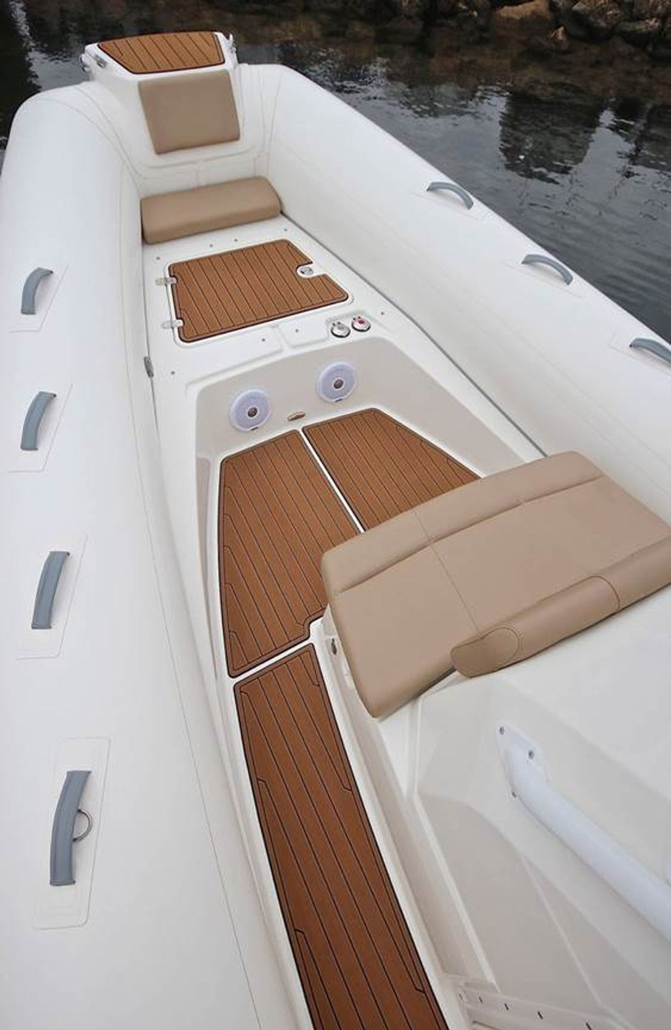 The Eagle 8 is constructed with a deep-V-hull, a signature of the Eagle series. This 26′ RIB boat is made with extra-wide tubes, a square bow and an extended waterline to ensure you’ll enjoy a smooth, stable ride whenever you’re aboard.