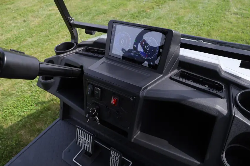 . Searching for a golf cart that combines cutting-edge style with top-notch performance? Look no further than the FF4 Cart! This all-electric golf cart comes with an amazing digital touchscreen, Bluetooth audio system, LED headlights, and even more! The lifted chassis provides extra clearance while the 14” aluminum wheels give you a smooth-capable ride. The onboard charger makes it easy to keep your FF4 Cart fully charged and ready to go!